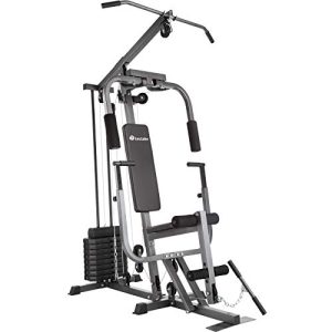 Cet appareil de musculation est particulièrement intéressant à acquérir car il permet une large gamme d’exercices. En effet, le leg developper intégré permet de développer les muscles des jambes et des cuisses par des mouvements de traction vers l’avant soit en position allongée soit en position assise pour faire travailler des groupes de muscles différents. L’extension des jambes va agir sur les muscles des quadriceps et des ischio-jambiers. Le pupitre biceps permet de travailler avec intensité cette partie du corps de même que le butterfly va développer les pectoraux pour offrir une masse musculaire intéressante. La tour à poulie et le tirage poitrine permettent quant à eux de faire travailler les muscles du dos.