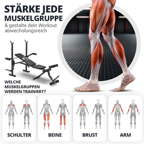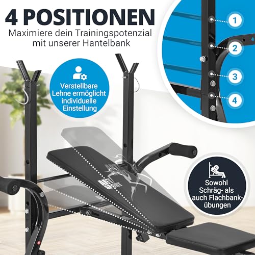 ✔ Réglable en 4 positions – dossier réglable en 4 positions différentes ; peut donc être utilisé comme banc incliné et banc plat, rembourrage de 4 cm d’épaisseur avec revêtement facile d’entretien en similicuir robuste